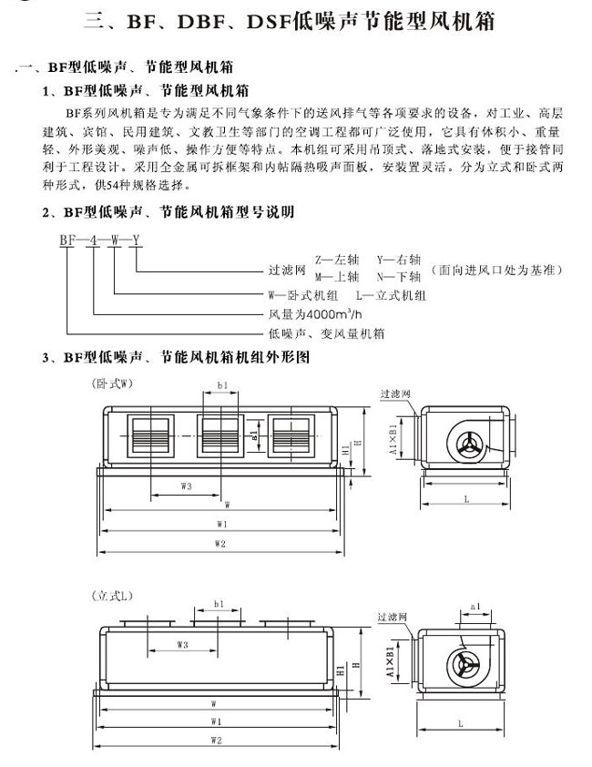 4、BF型低噪声、节能型风机箱外形尺寸表
